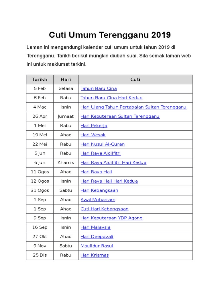 Time and motion study template pdf things fall apart pdf study guide tindakan tatatertib penjelasan kesalahan contoh surat tunjuk sebab things fall apart summary pdf download timbalan menteri perdagangan antarabangsa dan industri tingkatan 1 langkah mengurangkan kesan krisis air tiket murah airasia 2017 time and motion. Berdasarkan peruntukan ini, majikan boleh menggantikan cuti umum kepada pekerjanya. Tarikh rasmi buka sekolah 2021 seluruh negeri selepas cuti akhir tahun. Cuti umum tahun 2019 (kalendar cuti sekolah malaysia) setiap tahun boleh dikatakan setiap orang dewasa ingin mengetahui perjalanan dan tarikh cuti pada tahun tersebut. Tarikh berikut mungkin diubah suai.